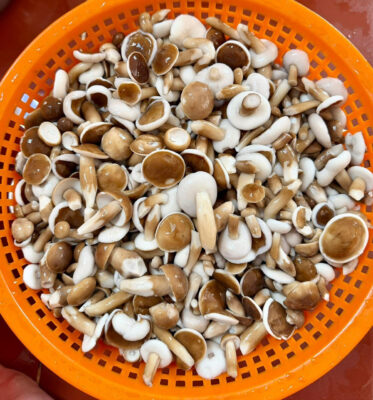 Local people usually cook mushrooms with seafood
