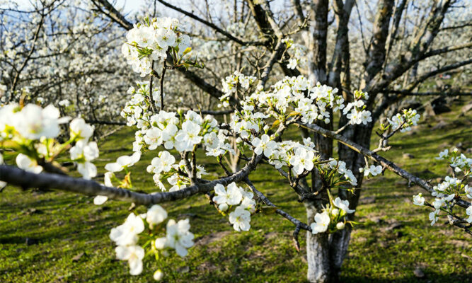 From late February to mid-March, villages such as Khau Trang, Pac Khoang, Na Mu, and Khuoi Phay simultaneously enter the blossom season. During the pear blossom season in Hong Thai, branches that appeared bare after winter suddenly come to life, covering themselves with clusters of delicate white flowers.